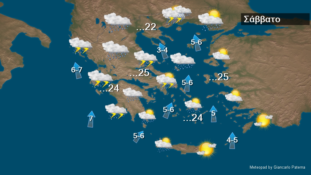 Το Σάββατο 05-11-22 αρχικά στα δυτικά και βαθμιαία στα υπόλοιπα ηπειρωτικά αναμένονται αυξημένες νεφώσεις με τοπικές βροχές και σποραδικές καταιγίδες κατά τόπους ισχυρές στα δυτικά και από το βράδυ και στα βόρεια.