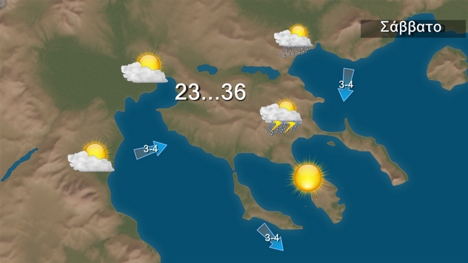 Σποραδικές καταιγίδες θα εκδηλωθούν στη Μακεδονία και τη Θράκη που τη νύχτα θα ενταθούν κυρίως στην κεντρική Μακεδονία. Από τις νυχτερινές ώρες τοπικά ισχυρές καταιγίδες θα εκδηλωθούν και στις Σποράδες, την ανατολική Θεσσαλία και τη βόρεια Εύβοια.