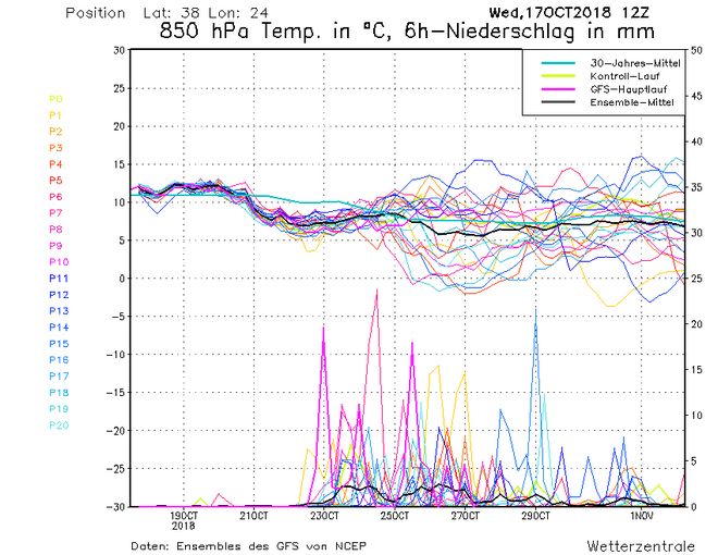 Υπάρχει σαφής τάση για πτώση της θερμοκρασίας στην Αθήνα και στη Θεσσαλονίκη της τάξεως των 5 περίπου βαθμών. Παράλληλα διαφαίνεται και η προοπτική για αξιόλογες βροχοπτώσεις.