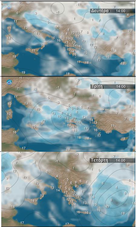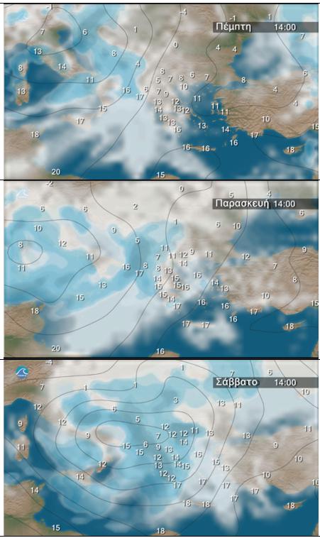 Το σύστημα αυτό θα προκαλέσει νοτιάδες και οι θερμοκρασίες θα παρουσιάσουν μικρή άνοδο κυρίως ως προς τις ελάχιστες τιμές.