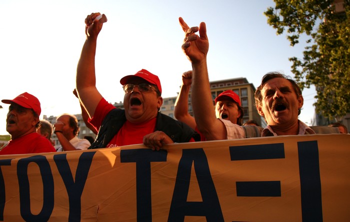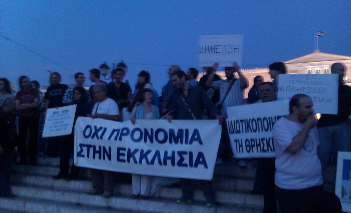 Εκτός από τους ιδιοκτήτες ταξί και την ΑΔΕΔΥ, μπροστά από τη Βουλή συγκεντρώθηκαν και πολίτες που ζητούν την φορολόγηση της εκκλησίας.