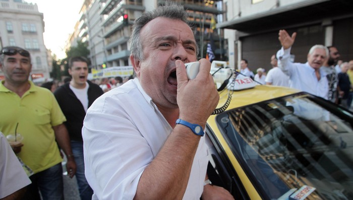 Τουλάχιστον 3.000 ιδιοκτήτες και οδηγοί ταξί παραμένουν μπροστά από τη Βουλή, διαμαρτυρόμενοι για το άνοιγμα του επαγγέλματός τους.