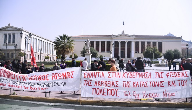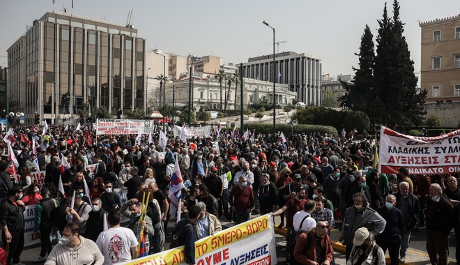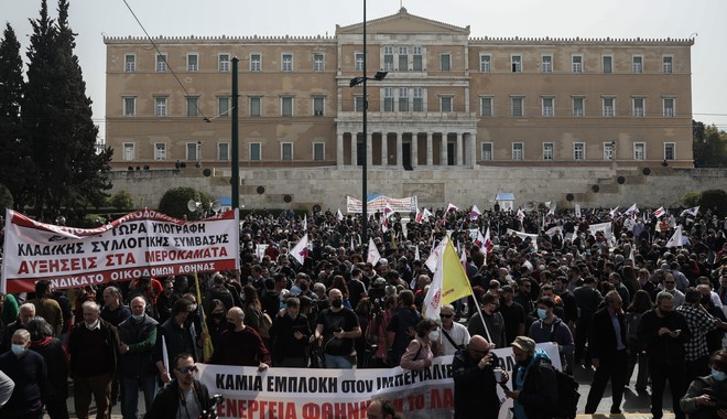 Σε εξέλιξη οι απεργιακές κινητοποιήσεις στο κέντρο της Αθήνας κατά του κύματος ακρίβειας. Μεγάλες συγκεντρώσεις από ΓΣΕΕ, ΑΔΕΔΥ και ΠΑΜΕ. LIVE εικόνα από το Σύνταγμα.