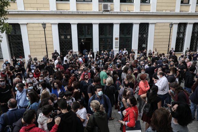 Παρόντες στο προαύλιο της Ευελπίδων είναι γονείς, εκπαιδευτικοί και μαθητές, οι οποίοι συμπαραστέκονται στους συλληφθέντες και ζητούν να αφεθούν ελεύθεροι, χωρίς να τους αποδοθούν κατηγορίες. Στην Ευελπίδων βρίσκονται επίσης ο Τομεάρχης Παιδείας του ΣΥΡΙΖΑ, Νίκος Φίλης, ο Τομεάρχης Προστασίας του Πολίτη, Χρήστος Σπίρτζης και ο εκπρόσωπος του κόμματος, Νάσος Ηλιόπουλος.
