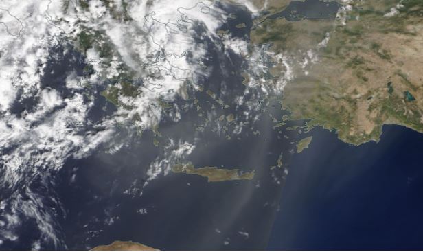 Μεγάλες συγκεντρώσεις Αφρικανικής σκόνης είχαμε τη Δευτέρα αλλά και σήμερα πάνω από τον Ελληνικό χώρο, όπως αποτυπώνεται από την παρακάτω δορυφορική εικόνα της NASA.