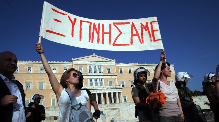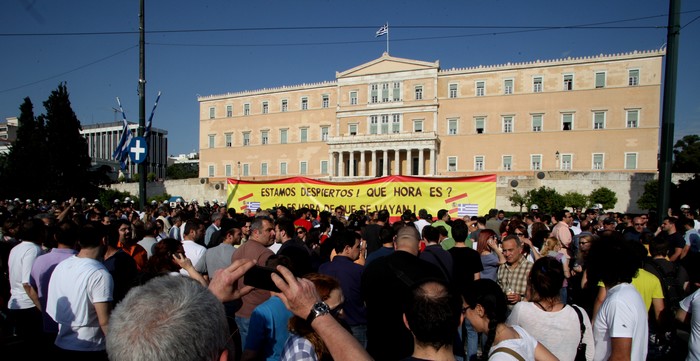 Συγκεντρώσεις διαμαρτυρίας σε Αθήνα, Θεσσαλονίκη και Πάτρα και άλλες πόλεις. Οι νέοι μέσω Facebook, ενώνουν τις φωνές τους απέναντι στα νέα μέτρα λιτότητας. Πάνω από 10.000 άτομα στο Σύνταγμα. Σηκώθηκε πανό που γράφει "Οι Έλληνες ξύπνησαν". Απάντηση στους Ισπανούς με ξυπνητήρια στη Θεσσαλονίκη (Pics+Vid)