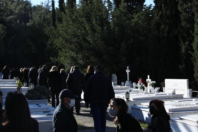 Πλήθος κόσμου στο Κοιμητήριο Παπάγου για το τελευταίο αντίο στον ζωγράφο Αλέκο Φασιανό που έφυγε από τη ζωή το βράδυ της Κυριακής.