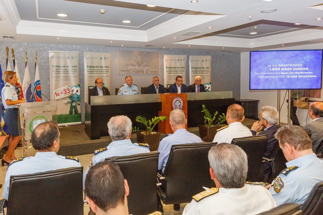 «Σήμερα είμαστε εδώ για να παρουσιάσουμε μια σημαντική δράση, που ξεκινά στις υπηρεσίες της Ελληνικής Αστυνομίας. Μια δράση ανταποδοτικής ανακύκλωσης με περιβαλλοντικό πρόσημο από τη μια, αλλά και με κοινωνικό σκοπό από την άλλη.