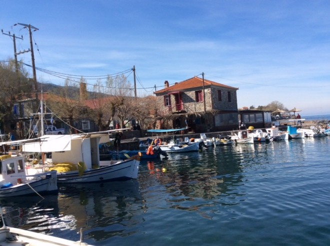Εκεί βρέθηκα λοιπόν στο λιμάνι της Σκάλας Συκαμινιάς μια μέρα που μόνο αγροκαιριά – κατά τον Στράτη Μυριβήλη , γέννημα θρέμμα της Λέσβου – δεν είχε . Λαμποκοπούσε ο ήλιος και τίποτε δεν έδειχνε ότι εδώ καταφτάνουν χιλιάδες πρόσφυγες με σαπιοκάραβα από την Τουρκία . Άλλοι πατάνε στη γή της Μυτιλήνης κι άλλοι πνίγονται στο βυθό της, έτσι απλά ” ανώδυνα” κι εύκολα .