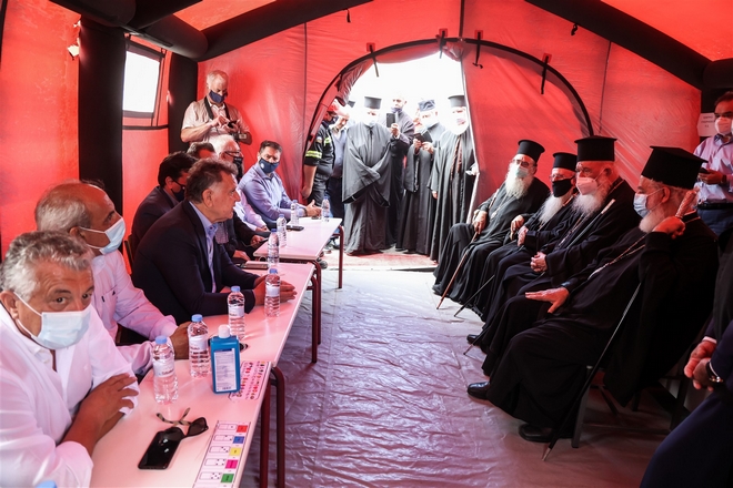 Ακολούθησε η επίσκεψη του Αρχιεπισκόπου κ. Ιερωνύμου στο Συντονιστικό Κέντρο Επιχειρήσεων της Πυροσβεστικής στο Αρκαλοχώρι όπου αφού τόνισε ότι στην Ελλάδα εύκολα λέμε τα μεγάλα λόγια και μετά ξεχνάμε, ότι η Εκκλησία δίνει το παράδειγμα στη συνέχεια υπογράμμισε: