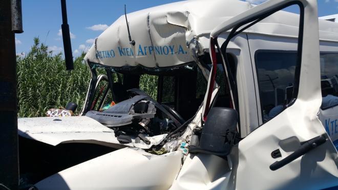 Από την σφοδρή σύγκρουση τραυματίστηκαν 12 άτομα εκ των οποίων οι 11 επιβαίνοντες όλως ελαφρά, ανάμεσά τους και δύο αδέρφια, μία 17χρονη με τον 11χρονο αδερφό της και σοβαρά τραυματίστηκε ο οδηγός του λεωφορείου τον οποίο χρειάστηκε να απεγκλωβίσουν οι πυροσβέστες. Όλοι οι τραυματίες μεταφέρθηκαν στο Γενικό Νοσοκομείο Αγρινίου. Ο οδηγός νοσηλεύεται διασωληνωμένος.