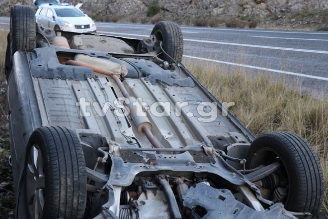 Το αυτοκίνητο, αφού πέρασε στο αντίθετο ρεύμα κυκλοφορίας τούμπαρε εκτός δρόμου.