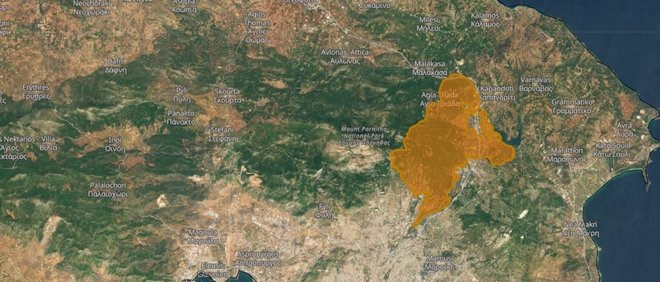 Από την άλλη πλευρά, η χαρτογράφηση από την επιχειρησιακή μονάδα BEYOND του ΕΑΑ της καμένης έκτασης με βάση την εικόνα του ευρωπαϊκού δορυφόρου Sentinel-2, η οποία ελήφθη χθες στις 12:20, οδήγησε στην εκτίμηση ότι η καμένη έκταση στην Αττική υπολογίζεται σε 6.747 εκτάρια (περίπου 68.000 στρέμματα), κάπως μικρότερη από την εκτίμηση του meteo για 80.000 στρέμματα.