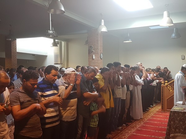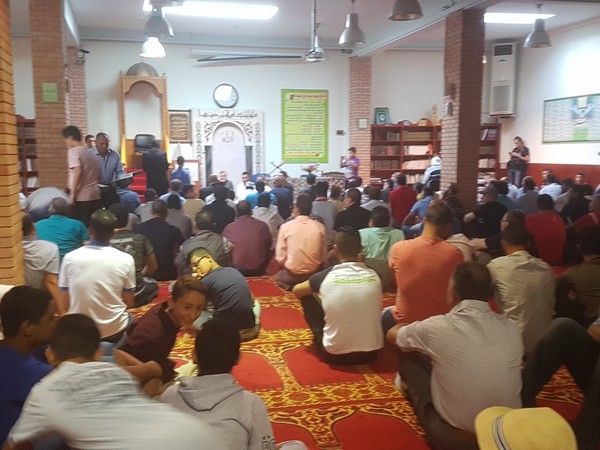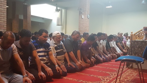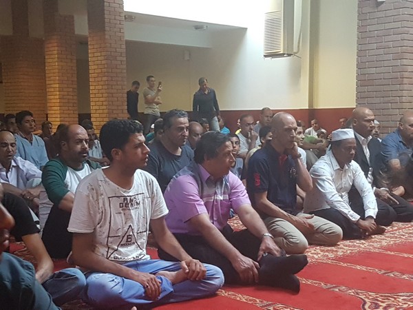 Ο ιμάμης λέει την προσευχή και οι πιστοί γονατίζουν επαναλαμβάνοντας τα λόγια του, ενώ στη συνέχεια μοιράζονται γλυκά. Σε χωριστό σημείο του Ελληνοαραβικού Κέντρου προσεύχονται οι γυναίκες. Ένας άνθρωπος κυκλοφορεί ανάμεσα στους πιστούς με ένα λευκό κουτί και ο καθένας αφήνει μέσα μερικά κέρματα. “Είναι για τα έξοδα του χώρου” εξηγεί στο News 24/7 ο ιμάμης. “Εδώ λειτουργούμε νόμιμα, με άδεια. Ερχόμαστε χρόνια. Εκτός από τις προσευχές, γίνονται και άλλες δραστηριότητες. Έλληνες Μουσουλμάνοι κάνουν μαθήματα Αραβικών και Άραβες κάνουν μαθήματα Ελληνικών. Κυρίως τα παιδιά αλλά και μεγαλύτεροι. Επίσης στις μεγάλες γιορτές στήνεται ένα τραπέζι και μαζευόμαστε όσοι θέλουμε για να φάμε μαζί” συμπληρώνει.