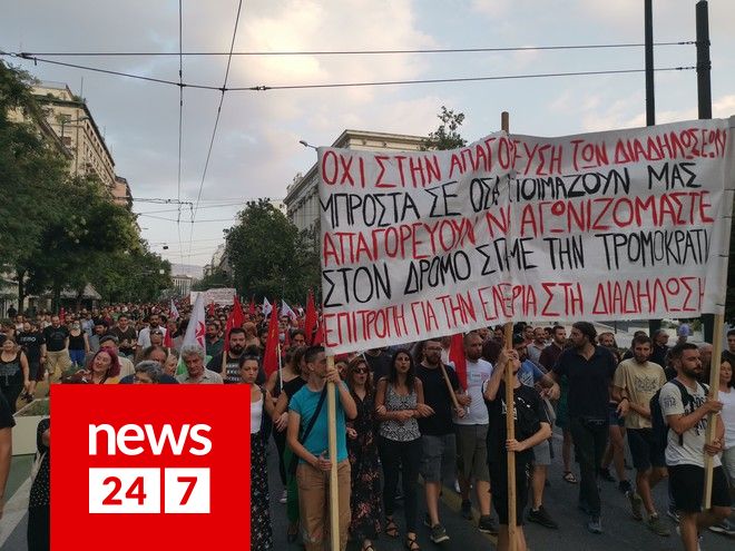 Πορεία διαμαρτυρίας κατά του νομοσχεδίου για τις διαδηλώσεις πραγματοποιούν αυτήν την ώρα φοιτητές, οργανώσεις και συλλογικότητες της Αριστεράς στο κέντρο της Αθηνας