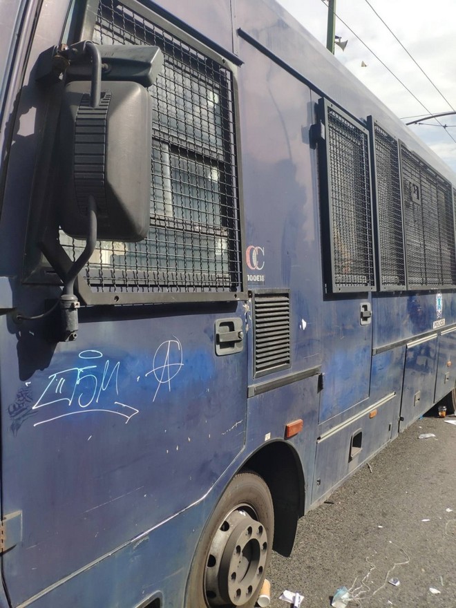 Περισσότερες από 150 μολότοφ ερρίφθησαν κατά των αστυνομικών δυνάμεων κυρίως στην διάρκεια καταδίωξης στην κάθοδο της Λ. Αλεξάνδρας. Από τις αστυνομικές δυνάμεις πραγματοποιήθηκαν δύο προσαγωγές».