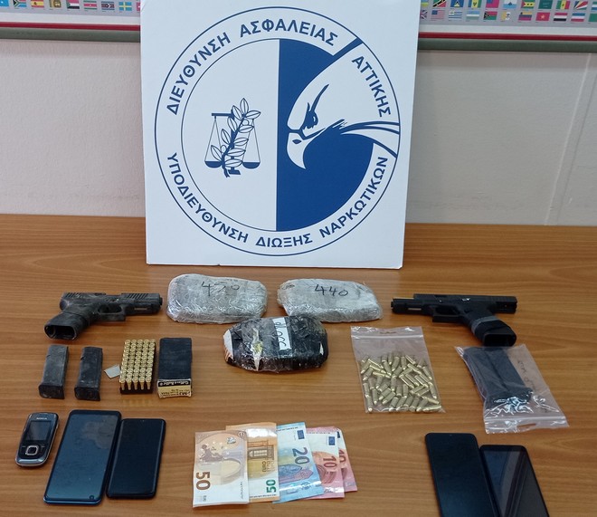 Σε έρευνες που πραγματοποιήθηκαν σε οικίες και χώρους απόκρυψης ναρκωτικών ουσιών, βρέθηκαν και κατασχέθηκαν ηρωίνη βάρους 1.440 γραμμαρίων, δύο πιστόλια, 153 φυσίγγια, χρηματικό ποσό 140 ευρώ και 5 κινητά τηλέφωνα. Οι συλληφθέντες οδηγήθηκαν στον Εισαγγελέα Πλημμελειοδικών Αθηνών.
