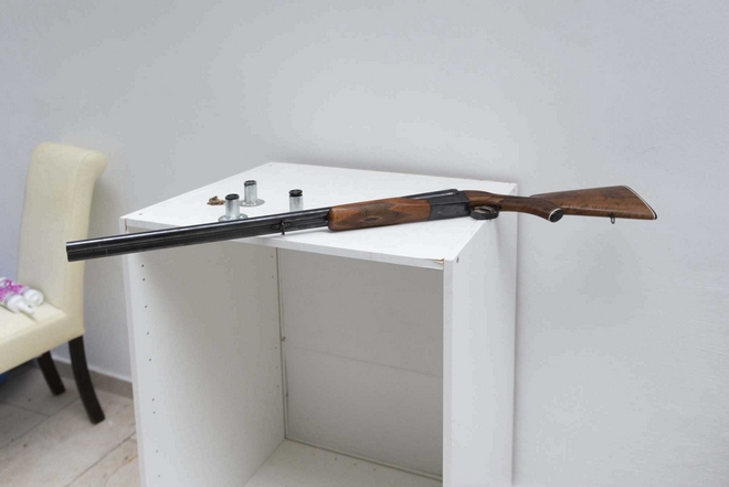 Πρόσθετα, βρέθηκαν 426 φυσίγγια, αλεξίσφαιρο γιλέκο, 5.760 κίβδηλα κέρματα των 2 ευρώ, κλειδιά και σημειώσεις από τα καταστήματα και το χρηματικό ποσό των 8.750 ευρώ.