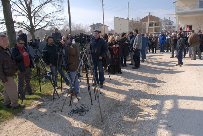Πλήθος κόσμου έχει συγκεντρωθεί κοντά στο σημείο, αγωνιώντας να μάθε περισσότερα για την τύχη του Βαγγέλη Γιακουμάκη.