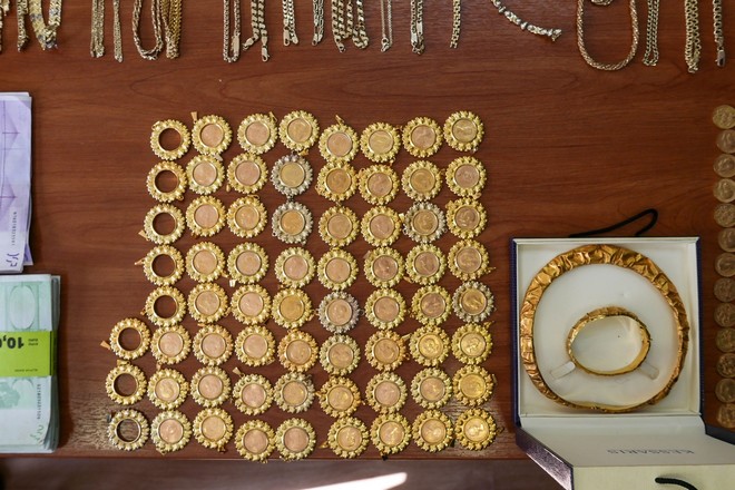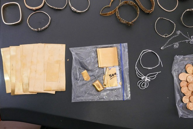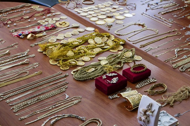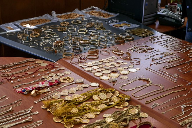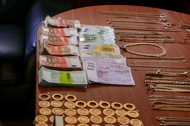 Πολλά από τα κλοπιμαία βρέθηκαν χτισμένα ακόμα και μέσα σε τοίχους πίσω από πλακάκια, 600.000 ευρώ σε τραπεζικές καταθέσεις, εκατοντάδες χιλιάδες ευρώ σε μετρητά, φύλλα χρυσού, 120 κιλά ράβδοι ασήμι, χιλιάδες κοσμήματα, μονόπετρα, διαμάντια και ρολόγια πολυτελείας…