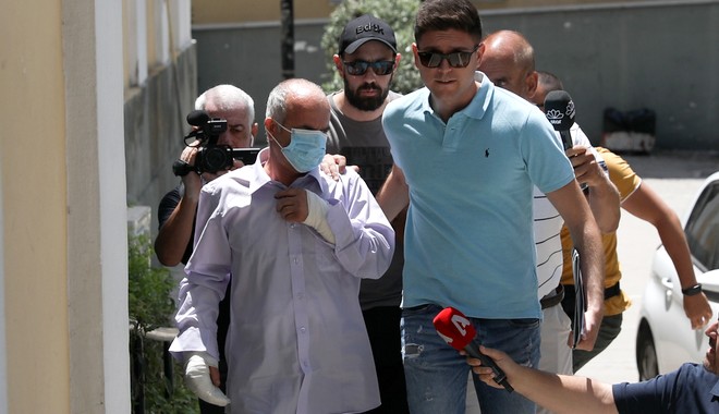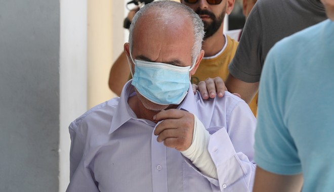 Με μάσκα που κάλυπτε το πρόσωπό του και με νάρθηκες στα χέρια από την πρόσκρουση του οχήματός του σε δέντρο στο ύψος της παραλίας Θυμάρι, στην Ανάβυσσο, μετά τη διαφυγή του από το σημείο όπου σκότωσε τη 46χρονη εν διαστάσει σύζυγό του, ο 53χρονος έφτασε στα δικαστήρια προκειμένου να απολογηθεί.