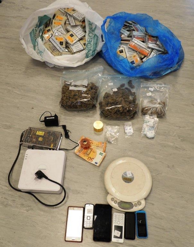 Μετά από έρευνα στην οικία του, και σε κατάστημα ψιλικών που διατηρούσε στο Περιστέρι βρέθηκαν και κατασχέθηκαν 379,8 γραμμάρια κάνναβης, 23,8 γραμμ. κοκαΐνης, 11 ναρκωτικά δισκία, 200 συσκευασίες καπνό, ζυγαριά ακριβείας, δύο κονιορτοποιητές κάνναβης, το χρηματικό ποσό των 200 ευρώ, 6 κινητά τηλέφωνα και κλειστό κύκλωμα καταγραφής βίντεο. Ο συλληφθείς, οδηγήθηκε στον Εισαγγελέα Πλημμελειοδικών Αθηνών.