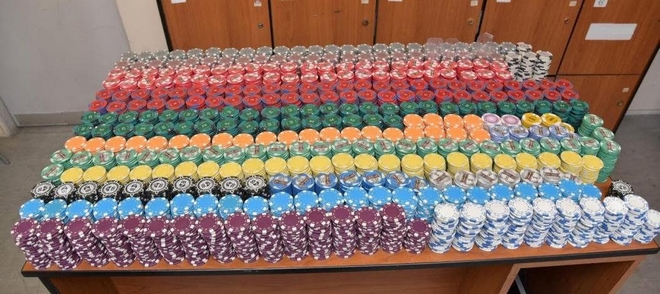 Στη συνέχεια πραγματοποιήθηκε έλεγχος στο κατάστημα, κατά τη διάρκεια του οποίου εξακριβώθηκε η λειτουργία του ως παράνομου καζίνο. Συνελήφθησαν 7 υπάλληλοι εκ των οποίων δύο ως υπεύθυνοι λειτουργίας του καταστήματος, ένας ως υπεύθυνος διενέργειας των παιγνίων, δύο ως κρουπιέρηδες και ένας ως πορτιέρης. Επιπλέον συνελήφθησαν 31 άτομα ως παίκτες απαγορευμένων παιγνίων. Σε έρευνα που διενεργήθηκε στον ισόγειο και υπόγειο χώρο του καταστήματος, βρέθηκαν και κατασχέθηκαν: