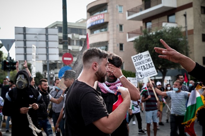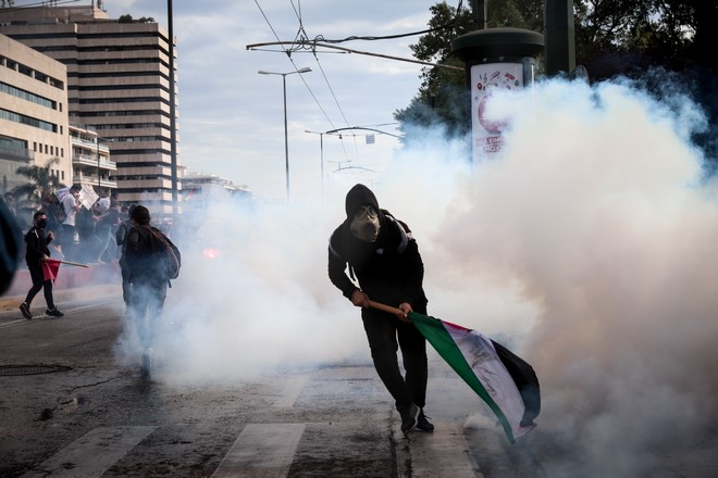 Ένταση σημειώθηκε το απόγευμα του Σαββάτου έξω από την ισραηλινή πρεσβεία, όπου κατέληξε πορεία αλληλεγγύης στον Παλαιστινιακό λαό. Η αστυνομία έκανε χρήση χημικών αλλά και αύρας.