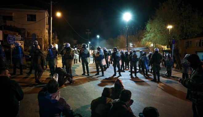 Συνεχίζονται οι συγκρούσεις μεταξύ κατοίκων και αστυνομικών για τα κλειστά κέντρα μεταναστών. Οι δυνάμεις των ΜΑΤ κάνουν εκτεταμένη χρήση χημικών.