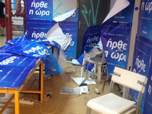 Τα άτομα που εισήλθαν στο Πανεπιστήμιο, κρατώντας στα χέρια τους διάφορα αντικείμενα, προκάλεσαν ζημιές και συγκρούστηκαν με φοιτητές.