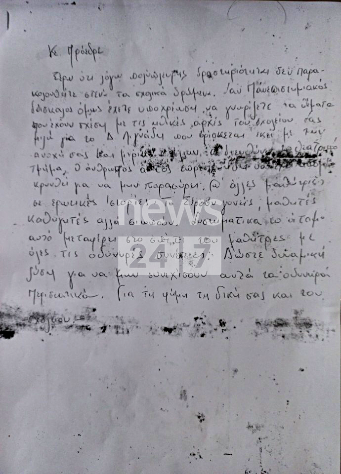 Η επιστολή που βρέθηκε στο σπίτι του Δημήτρη Λιγνάδη