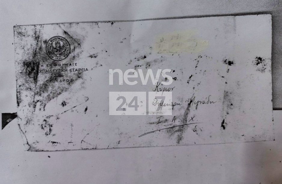 Επιστολή εντός φακέλου από το γραφείο του “Προέδρου” της “Εν Αθήναις Φιλεκπαιδευτικής Εταιρείας”, με παραλήπτη τον “Κύριον Δημήτρη Λιγνάδη” και την ένδειξη “Ι.Α.Χ.” (“Ιδίαις Αυτού Χερσίν”), βρέθηκε στο υλικό που είχε κατασχέσει η αστυνομία, αρχές Μαρτίου, στο σπίτι του τέως καλλιτεχνικού διευθυντή του Εθνικού Θεάτρου.