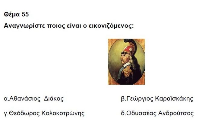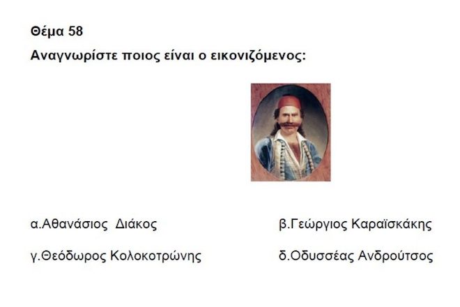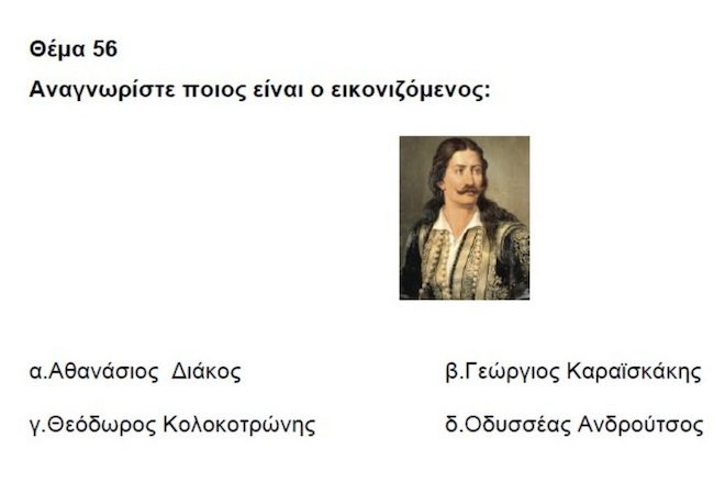 Οι γνώσεις Ιστορίας του εξεταζόμενου, θα αποδειχθούν και μέσω της αναγνώρισης απεικονίσεων ιστορικών μορφών του 1821.