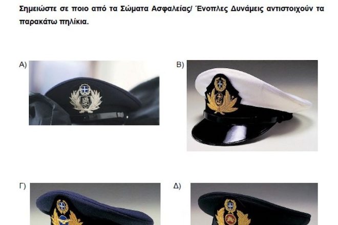 Ενδεικτικές είναι, πάντως, στην τράπεζα θεμάτων ερωτήσεις που δεν αφορούν την ουσία της ελληνικότητας, ενώ ορισμένες βασίζονται σε εμπειρικές γνώσεις Ελλήνων πολιτών και κυρίως ανδρών, όπως αυτή που αφορά τα διαφορετικά πηλίκια του στρατού και έχει τοποθετηθεί στην κατηγορία “Πολιτικοί Θεσμοί”,
