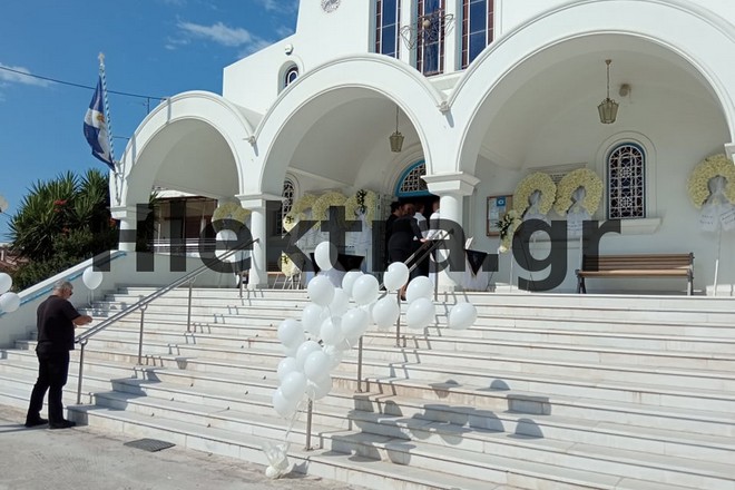Σημειώνεται πως λευκά μπαλόνια και στεφάνια βρίσκονταν στα σκαλιά της εκκλησίας, ενώ μοιράζονταν και λευκές μπομπονιέρες.