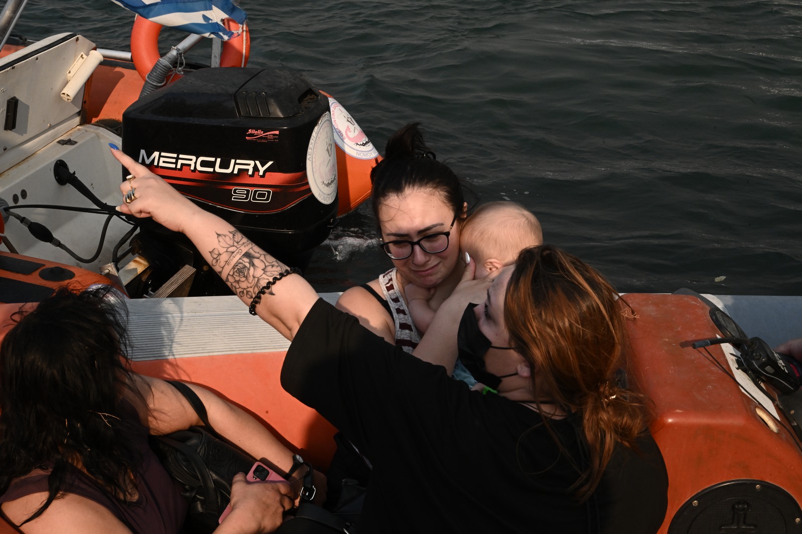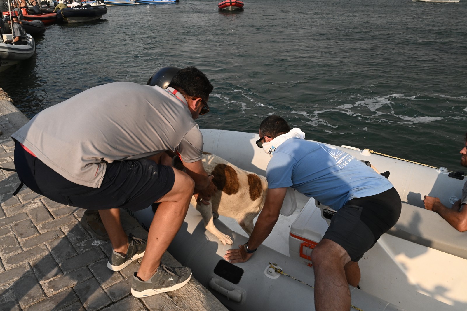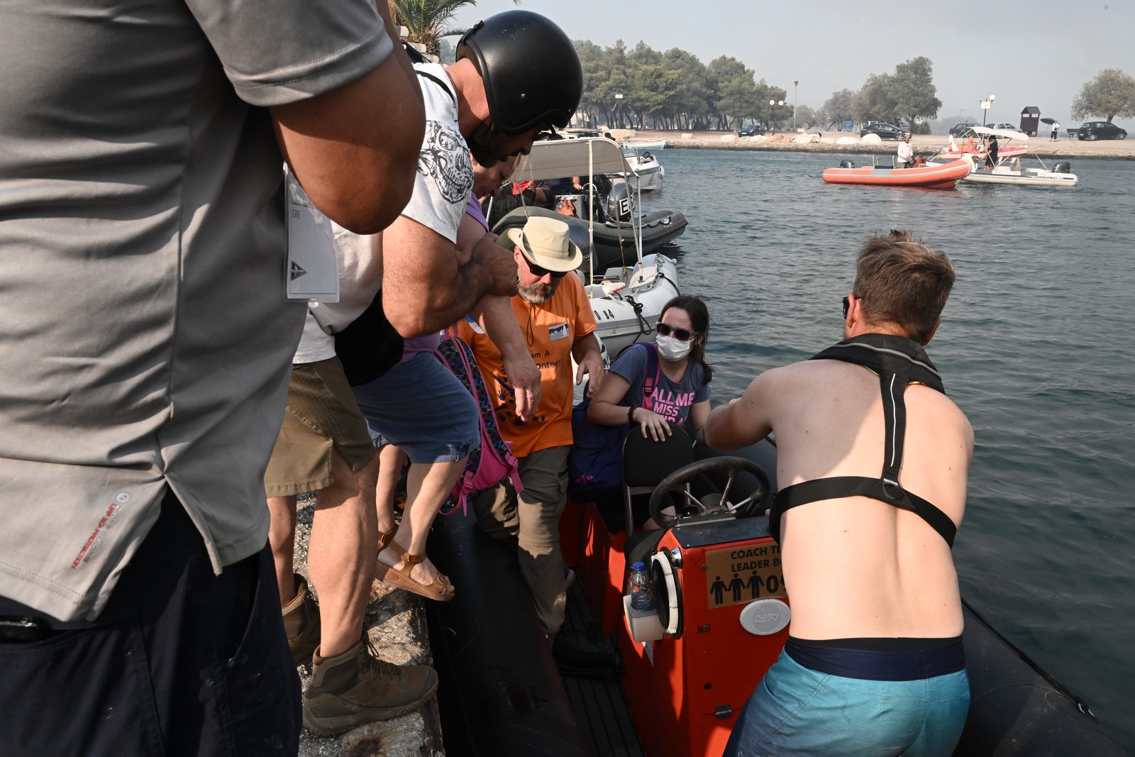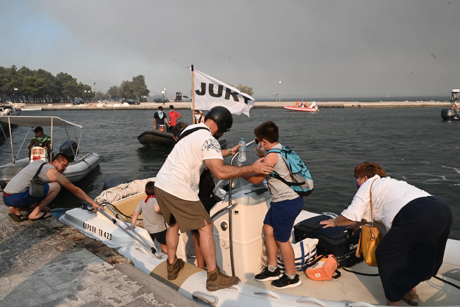 Γυναίκες με βρέφη, ηλικιωμένοι, κάτοικοι και επισκέπτες της περιοχής κρατώντας στην αγκαλιά τους τα κατοικίδιά τους συγκεντρώθηκαν στο λιμάνι και μπήκαν σε σκάφη και βάρκες με βλέμματα γεμάτα αγωνία αλλά και φόβο, τόσο για το πώς θα εξελιχθεί η φωτιά τις επόμενες ώρες αλλά για όσα αναγκάζονται να αφήσουν πίσω τους.