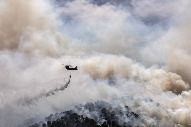 Οι φωτογραφίες από τα πύρινα μέτωπα που δείχνουν τις φλόγες δίπλα σε αυλές σπιτιών και πάνω από οικισμούς, αλλά και ανθρώπους που παρακολουθούν ανήμποροι και από απόσταση την πορεία της πυρκαγιάς, κάνουν τον γύρο του διαδικτύου.