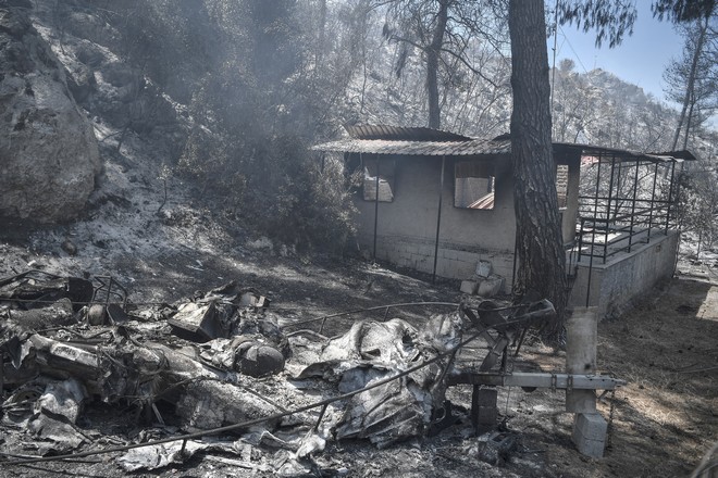 Τιτάνιες προσπάθειες έκαναν όλη τη νύχτα οι δυνάμεις της Πυροσβεστικής, σε μια άνιση μάχη με τις φλόγες, για να αναχαιτίσουν τη μεγάλη φωτιά που ξέσπασε το βράδυ της Τετάρτης στο Σχίνο Λουτρακίου. Το τοπίο της επόμενης μέρας προκαλεί μεγάλη θλίψη.
