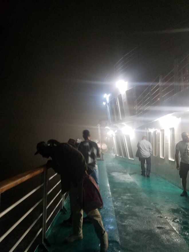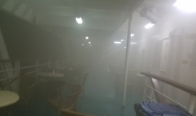 Επιβάτης ανέφερε στο NEWS 24/7 πως στο πλοίο επικρατεί ηρεμία παρά τις άσχημες συνθήκες από τον καπνό, ενώ αργά το βράδυ δόθηκε εντολή να φορέσουν όλοι οι επιβάτες τα σωσίβιά τους.