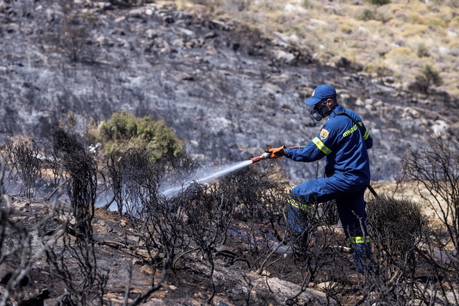Η φωτιά είχε ξεσπάσει σε οικοπεδικούς χώρους και πεύκα δίπλα από τον δρόμο ωστόσο δεν απειλήθηκαν άμεσα κατοικίες.