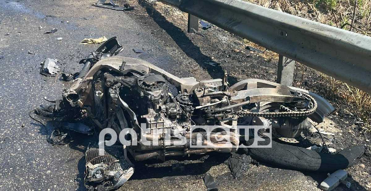 Όπως αναφέρει το patrisnews, ο μοτοσικλετιστής εκτινάχθηκε εκτός του δρόμου και η μηχανή τυλίχθηκε στις φλόγες.