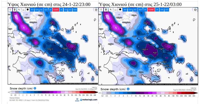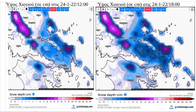 Μέσα στο παραπάνω χρονικό διάστημα θα προστεθεί νέο χιόνι , ώστε συνολικά τα ύψη χιονιού να φτάνουν στα ορεινά τα 40 cm και στις πεδινές περιοχές ή με μικρό υψόμετρο τα 20 με 25 cm .