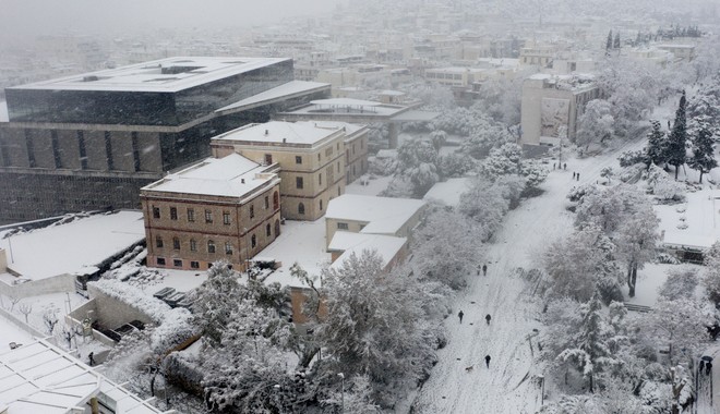 Σε περιοχές όπως η Πλάκα, το Κολωνάκι, αλλά και οι περιοχές του Γκύζη και Ζωγράφου ξημέρωσε μία “άσπρη” μέρα, με το χιόνι να έχει καλύψει τους δρόμους.