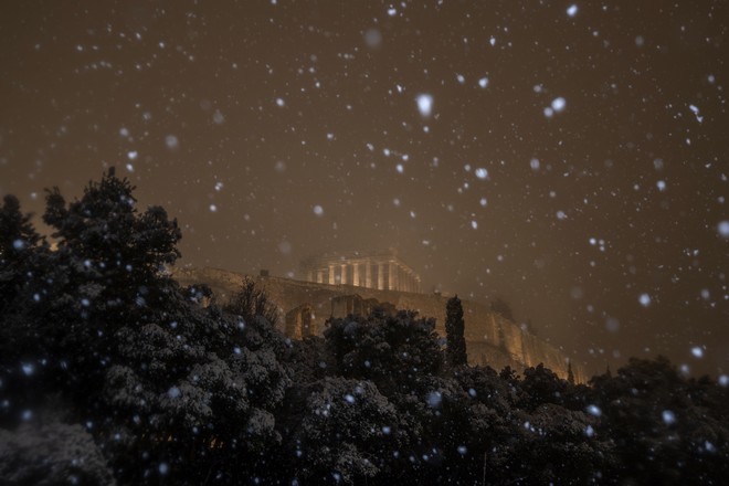 Δείτε φωτογραφίες από τη χιονισμένη Αθήνα: