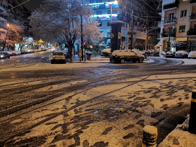 Στα “λευκά” ντύθηκε η Αθήνα το βράδυ της Δευτέρας, έπειτα από το πέρασμα της κακοκαιρίας “Μήδεια”, με το χιόνι να κάνει την εμφάνισή του ακόμα και σε κεντρικές περιοχές της πρωτεύουσας.