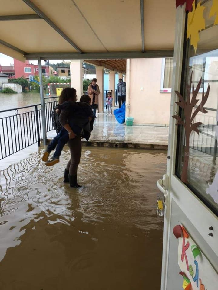 Μετά τη Νέα Φιλαδέλφεια, όπου μαθητές αναγκάστηκαν να φτιάξουν γέφυρα από θρανία ώστε να διαφύγουν από το προαύλιο του σχολείου τους που μετατράπηκε σε λίμνη από την καταιγίδα, εκπαιδευτικοί στην Κέρκυρα έβγαζαν αγκαλιά τους μαθητές από το πλημμυρισμένο σχολείο.