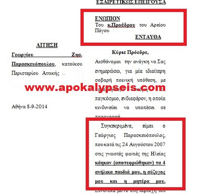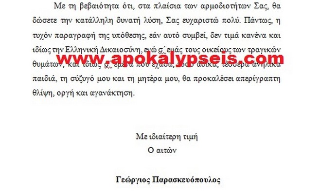 Το site apokalypseis.com δημοσιεύει ένα υπόμνημα αγωνίας που κοινοποίησε στον Άρειο Πάγο ο τραγικός πατέρας που έχασε στις φλόγες τα 4 ανήλικα παιδιά του, την σύζυγο και την μητέρα του.