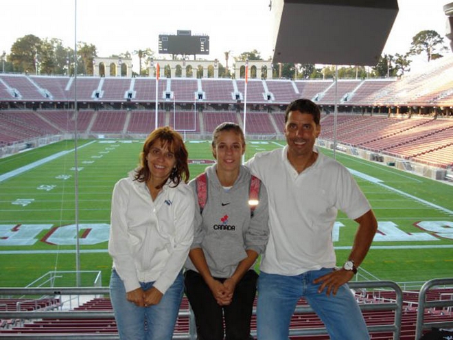 Η πρώτη της διεθνής εμπειρία ήτανε στα 15 της όταν εκπροσώπησε την Ελλάδα το 2005 στο Παγκόσμιο πρωτάθλημα νέων στο Μαρακές όπου και κέρδισε με 4.30. Το 2007 στο Παγκόσμιο Νέων που έγινε στην Οστράβα έφτασε την δεύτερη θέση με 4.25. Το 2008 κέρδισε το χάλκινο με 4.25 στο World Junior Championship στο Μπίντκος της Πολωνίας. Την ίδια χρονιά κέρδισε υποτροφία από το πανεπιστήμιο του Στάνφορντ και ξεκίνησε να αγωνίζεται με τους Στάνφορντ Κάρντιναλς.