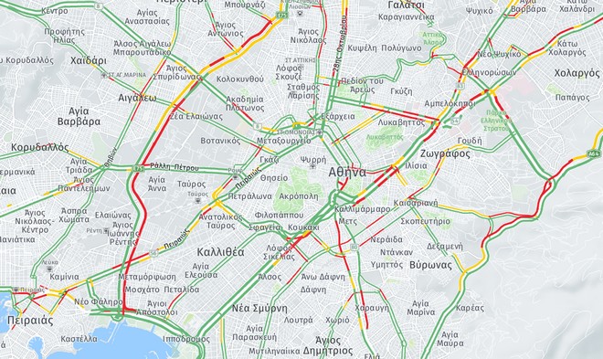 Συγκεκριμένα, στο “κόκκινο” είναι η κίνηση αυτή την ώρα και στα δύο ρεύματα της Εθνικής Οδού Αθηνών – Λαμίας (στην άνοδο από το ύψος της Πειραιώς μέχρι την Αχαρνών και στην κάθοδο από Μεταμόρφωση μέχρι Πειραιώς), και στα δύο ρεύματα της Κατεχάκη, στη Λ. Κηφισίας (στην άνοδο τμηματικά από Χαλάνδρι και στην κάθοδο στο ύψος του Αμαρουσίου), στην άνοδο της Βασ. Σοφίας, στη Βασ. Κωνσταντίνου, στην άνοδο της Λ. Συγγρού, στη Σταδίου και τη Βασ. Αμαλίας. Καθυστερήσεις παρουσιάζονται επίσης στη Λ. Ποσειδώνος στο ύψος του Αλίμου, στην Περιφερειακή Καρέα προς Αθήνα καθώς και στο Λιμάνι του Πειραιά.
