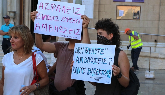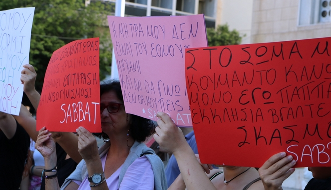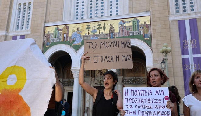 Δεκάδες γυναίκες και άντρες συγκεντρώθηκαν σήμερα, Πέμπτη (08/09) έξω από την Μητρόπολη Αθηνών στέλνοντας το δικό τους μήνυμα υπέρ του δικαιώματος στην άμβλωση. “Ασφαλείς, δημόσιες, δωρεάν αμβλώσεις”, “Η πολιτεία να προστατεύσει τις γυναίκες από τη ρητορική μίσους”, “Δικό μου σώμα, δική μου επιλογή”, “Βάλτε τέλος στον Μεσαίωνα της εκκλησίας” ήταν μερικά από τα μηνύματα που ακούστηκαν.